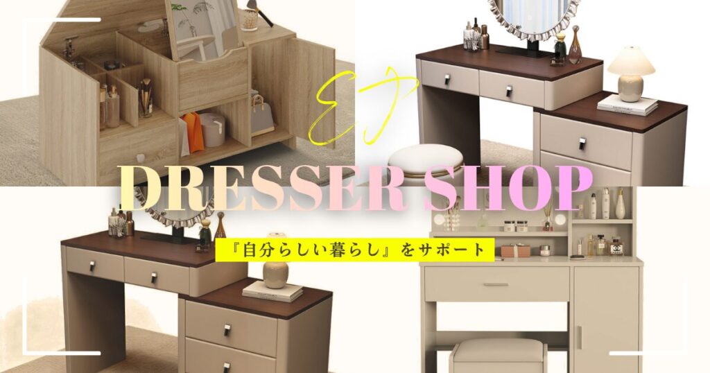■ 結論 EJ・ドレッサー専門店のドレッサーは、デザイン性・機能性・品質保証の三拍子がそろった“長く使える化粧台”を探している方に最適です。 特に、LEDミラー付き・大容量収納・伸縮式など、生活に合わせてカスタマイズできる多機能モデルが人気...