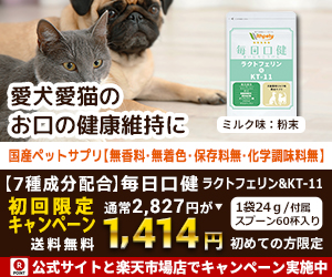そんな飼い主さんに選ばれているのが 犬猫兼用サプリ「毎日口健 ラクトフェリン&KT-11」 です。